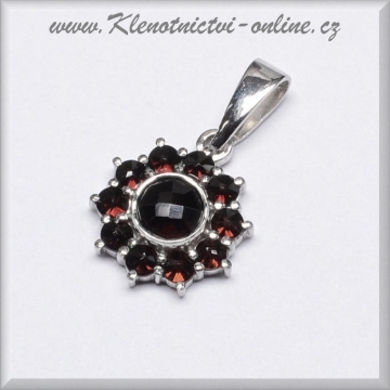 Atraktivní stříbrný přívěsek s českým granátem.