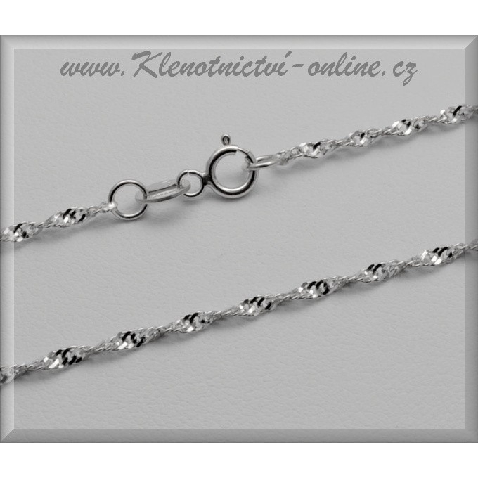 Oblíbený dámský kroucený řetízek z bílého čtrnáctikarátového zlata, typu lambáda. Tento řetízek je pro svůj tvar a vzhled jedním z nejoblíbenějších vzorů. Povrchová úprava rhodiun, která dodává řetízku větší odolnost a vyšší lesk. Zapínání na pérový kroužek. Vlastnosti: délka 45cm, šířka 1,8mm, váha 2,10g, ryzost 585/1000